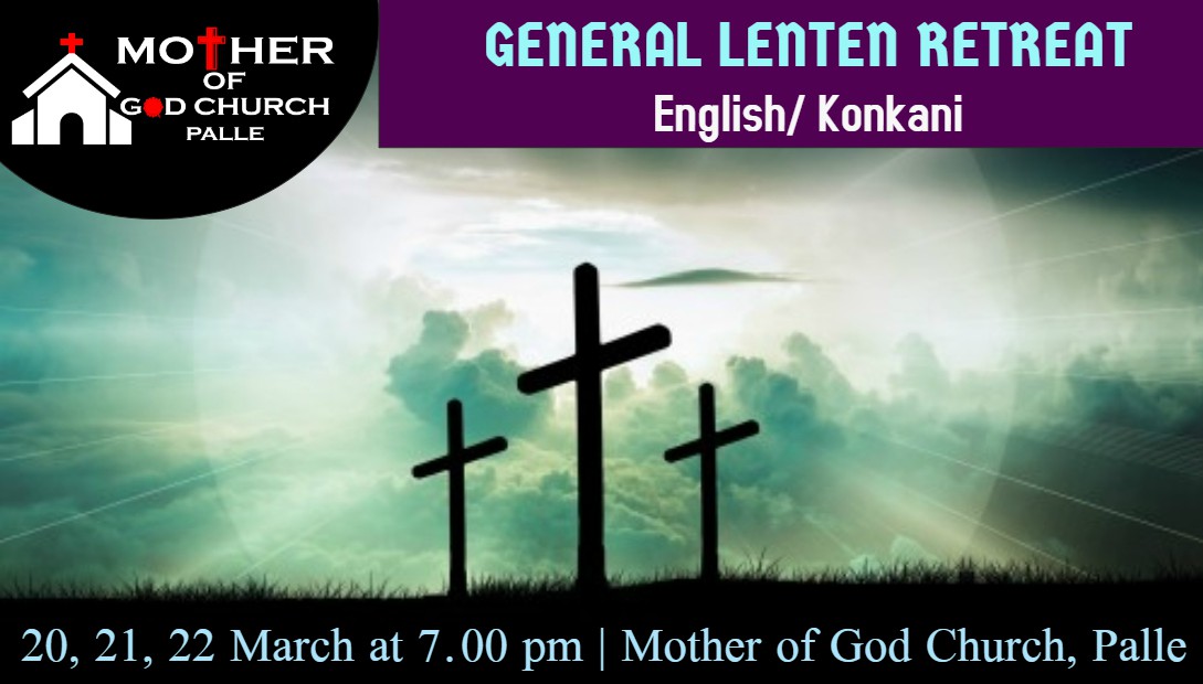 General Lenten Retreat in English/Konkani will be on 20th ,21st & 22nd March at 7 to 9 pm in our Church.
